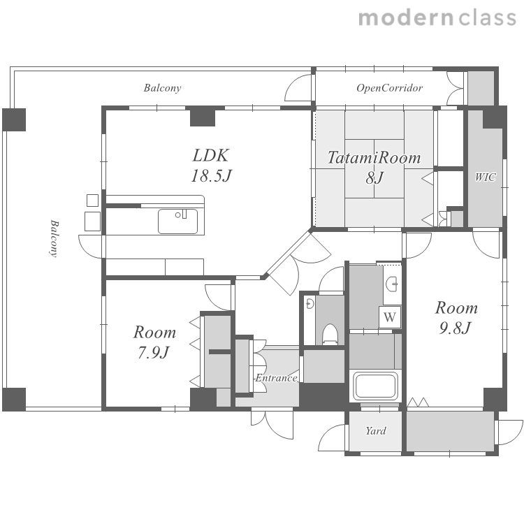 収納、照明、バストイレ別、バルコニー、フローリング、トイレ、温水洗浄便座、IHクッキングヒーター、シャワー、浴室、TVモニターホン、シューズボックス、宅配ボックス、脱衣所、洗面所、追焚き、コンロ3口以上、洗面洗髪化粧台、室内洗濯機置場、エアコン、システムキッチン、カウンターキッチン、ウォークインクローゼット、床暖房、角部屋